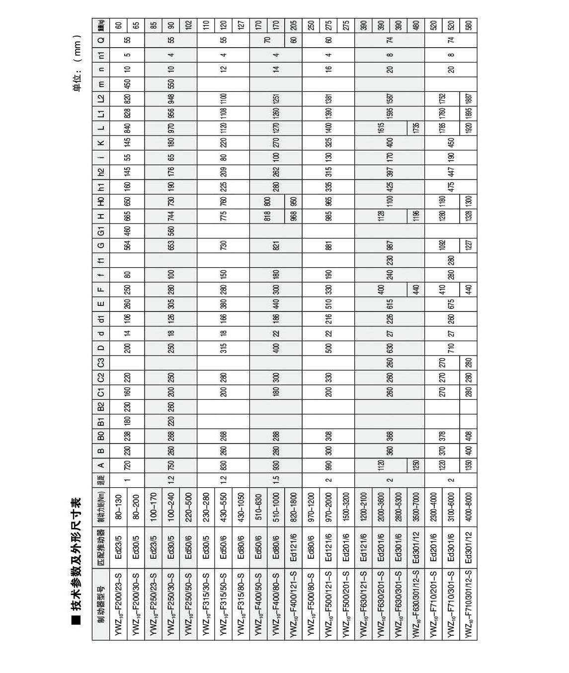 YWZ10,YWZ12系列電力液壓鼓式制動(dòng)器的連接尺寸和制動(dòng)力矩參數(shù)符合GB6333-86標(biāo)準(zhǔn),技術(shù)要求符合JB / T6406-2006標(biāo)準(zhǔn),配套符合DIN15430標(biāo)準(zhǔn)的Ed系列推動(dòng)器。